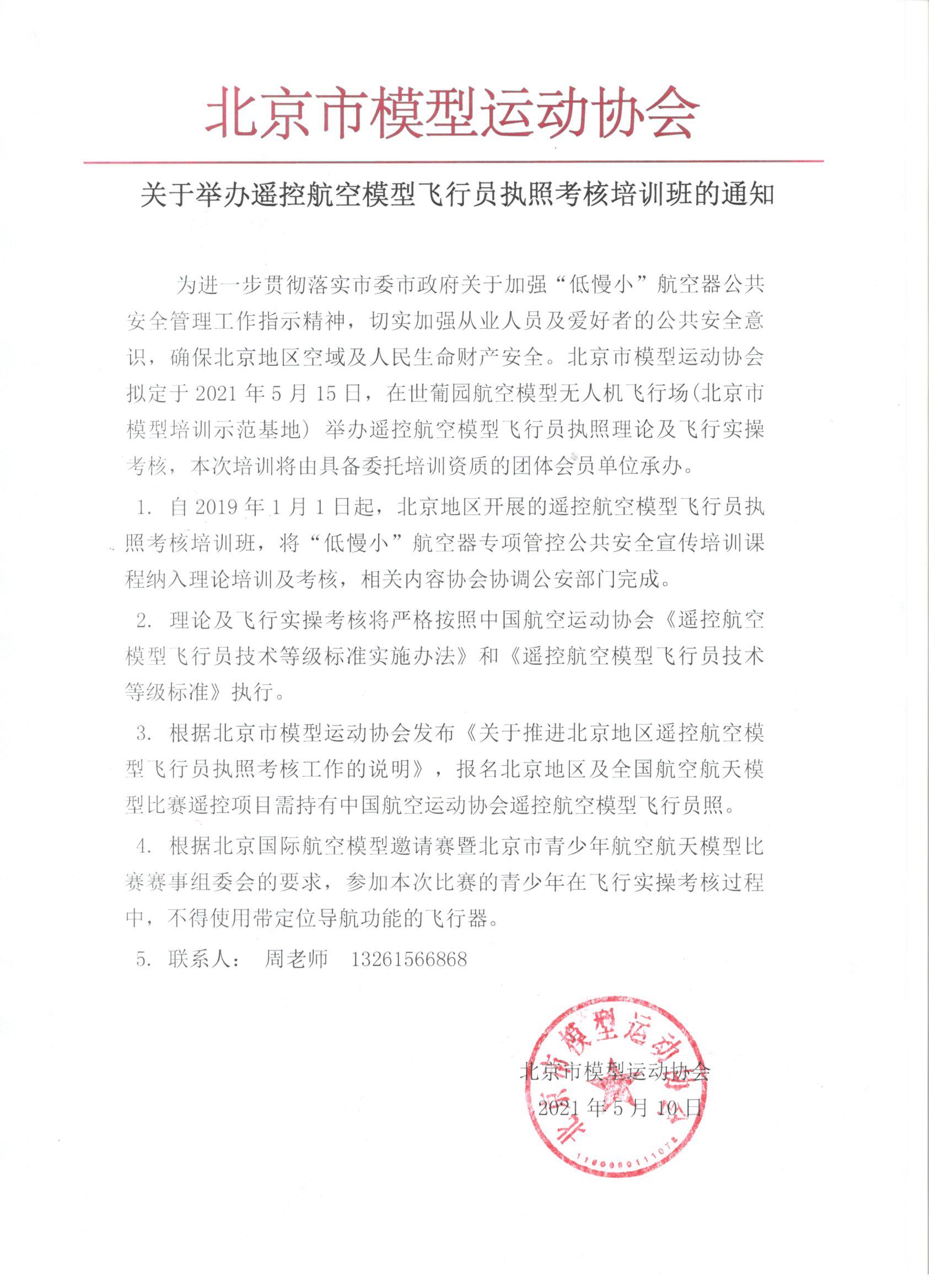 关于举办遥控航空模型飞行员执照考核培训班的通知